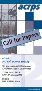 www.acrps.org acrps a.c. rail power supply 12. Internationale Konferenz 12th International Conference 13./14. März 2025 13th/14th March 2025 Leipzig THE WESTIN Hotel Call for Papers